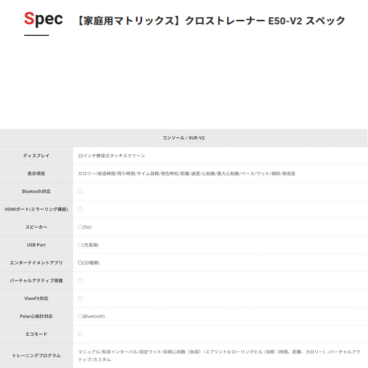 クロストレーナー エリプティカル E50-XUR-V2 MATRIX マトリックス ホライズン ホライゾン 純正マット付 ジョンソン 上級モデル