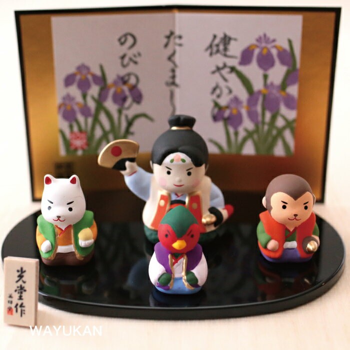 錦彩桃太郎飾り五月人形 薬師窯 コンパクト おしゃれ マンション 端午 節句 かわいい おしゃれ 玄関 マンション 縁起 出産祝 誕生日 プレゼント