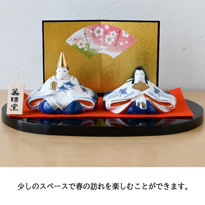 薬師窯 染錦睦雛 2426 雛人形 コンパクト モダン ひな人形 おしゃれ かわいい 陶器 雛祭り 玄関 マンション 縁起 出産祝 誕生日 プレゼント