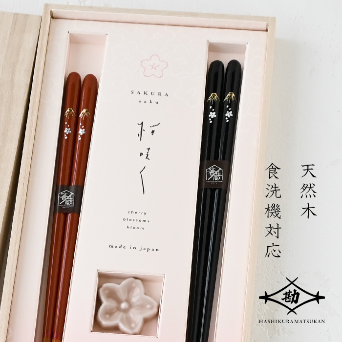 若狭塗 夫婦箸 さくらさく 桜富士ペア 落雁箸置付 S-12191 ペア ペア箸 塗り箸 食洗機対応 敬老の日 母の日 父の日 プレゼント 実用的 古希 喜寿 ギフト
