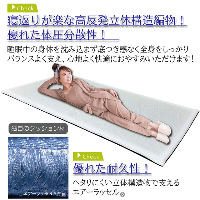 睡眠中の身体を沈み込まず底つき感なく全身をしっかりバランスよく支え、心地よく快適におやすみいただけます。