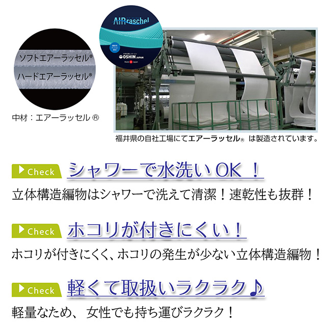 ハードタイプ・ソフトタイプの2種類のエアーラッセル構造