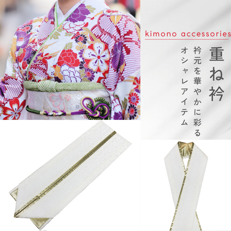 重ね襟 振袖 重ね衿 振袖用 白×金 伊達襟 伊達衿 リバーシブル シンプル 裏金 豪華 成人式 卒業式 袴 フォーマル 白 金 小紋 着物 和装
