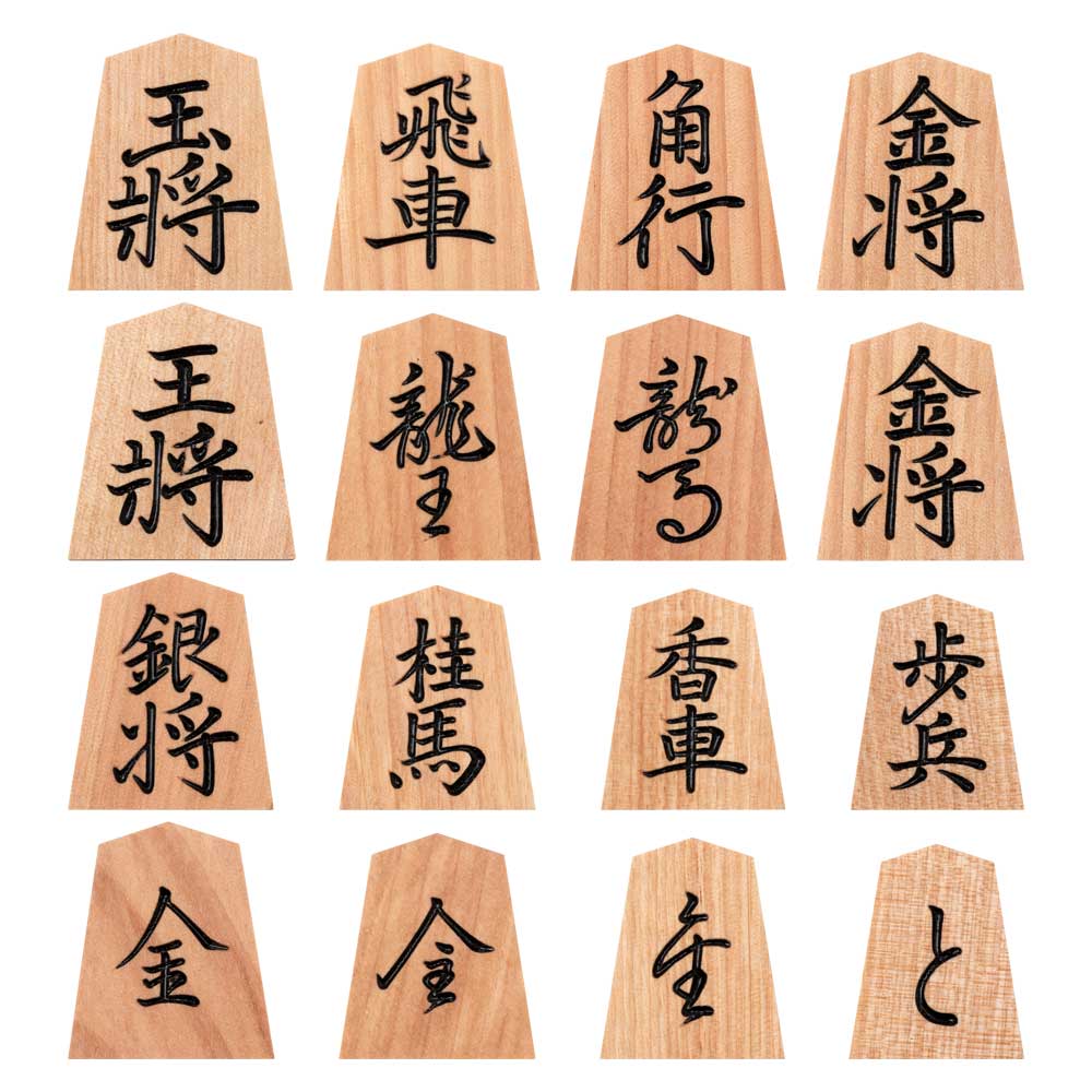 現在では書駒の他に彫駒、押し駒などさまざまな種類の製造方法があり、黄楊や楓などの木材を使用して将棋駒が生産されています。
