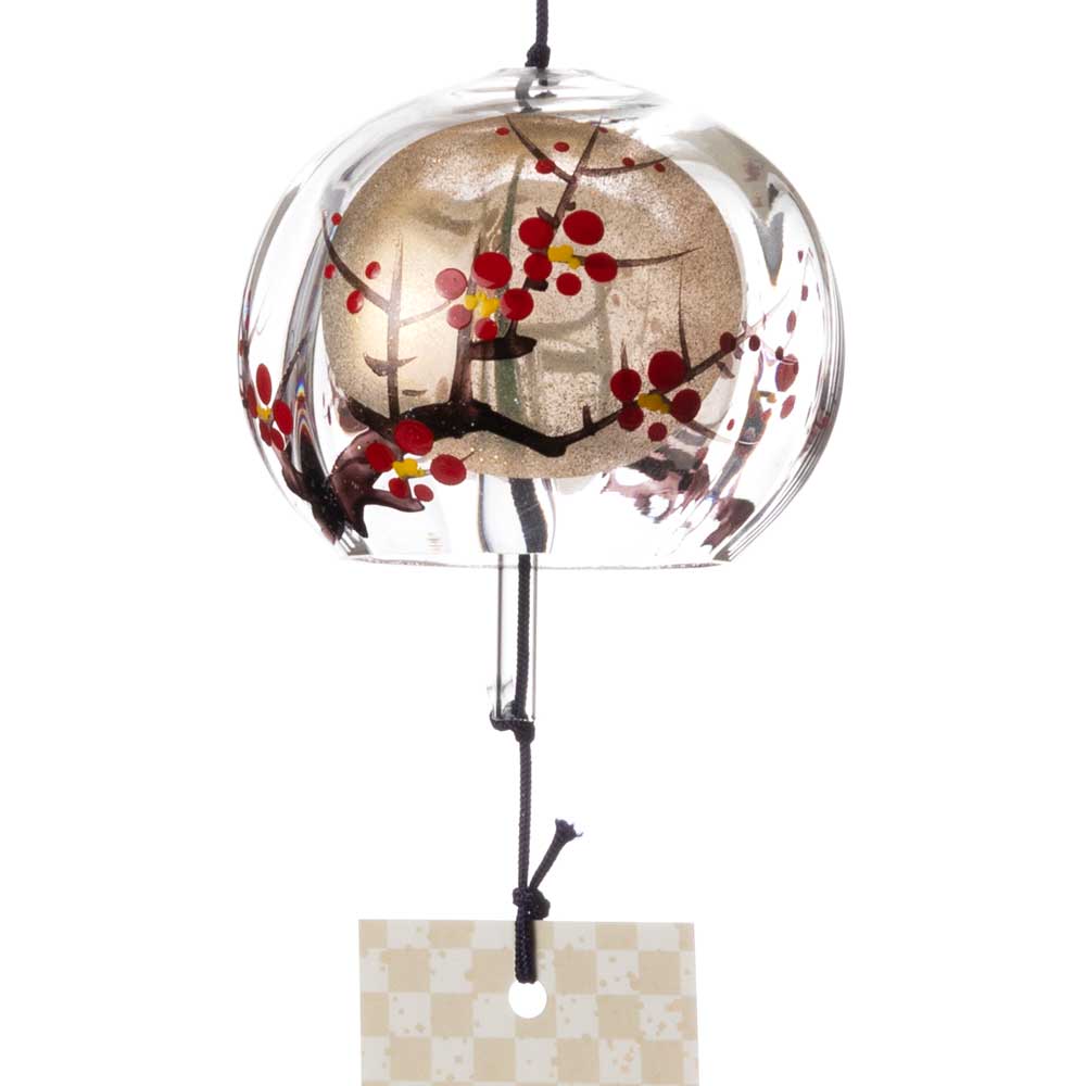 木之本 ぎやまん匠風鈴 金・銀梅 クリスタルガラス 蒔絵を施したハンドクラフト製 和風和柄のウィンドチャイム 日本製 福島県の工芸品