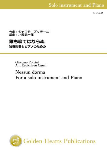 プッチーニ(Giacomo Puccini, 1858~1924)による歌劇「トゥーランドット」第三幕からの一曲を、独奏楽器とピアノのためにまとめました。コントラバスはオーケストラ弦による通常のチューニングを想定して書いています。