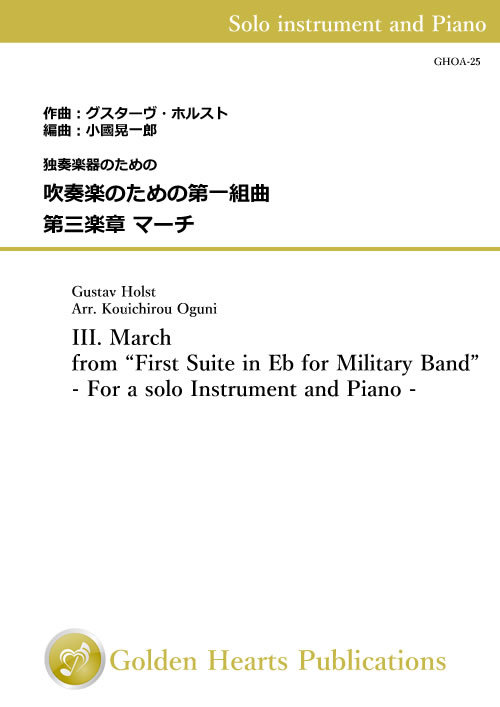 ホルスト(Gustav Holst, 1874~1934)による「吹奏楽のための第一組曲」から第三楽章「マーチ」を独奏楽器とピアノのためにまとめました。