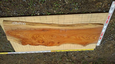 けやき(欅)1780(長さ)、 400〜520〜480(幅、木表、表面の平らな部分の寸法)40(厚み)単位ミリ、
