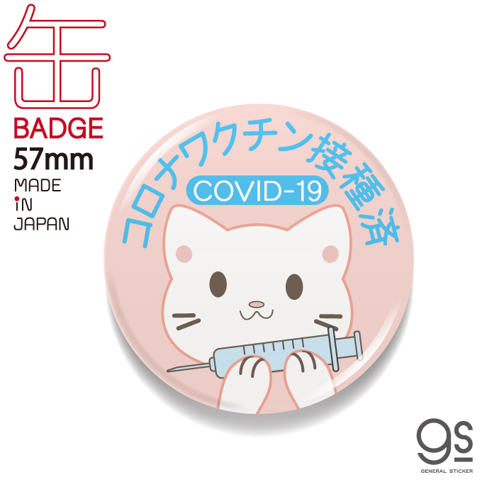 ワクチン接種済 猫 イラスト ピンク 57mm缶バッジ アピール メッセージ 感染対策 ピクトサイン ねこ 表示 コロナウィルス対策 GSJ335 gs 缶バッジ
