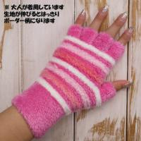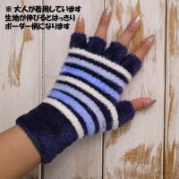 キッズ手袋 女の子 レディース手袋 女性 冬用 防寒 指なし 暖かい のびのび素材 (ボーダーモチーフ指切りタイプ)