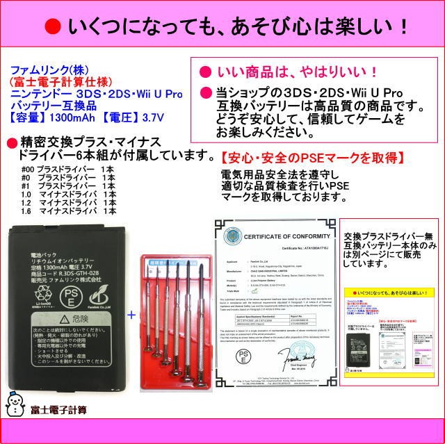 ニンテンドー 3DS・2DS・Wii U Pro コントローラー プレミアム互換バッテリー (交換ドライバー付)