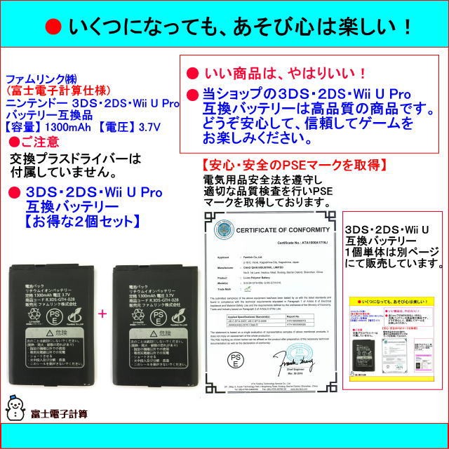 ニンテンドー 3DS・2DS・Wii U Pro コントローラー 【2個セット】プレミアム互換バッテリー (交換ドライバー無) 互換バッテリー本体のみ