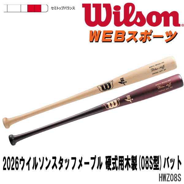 2026ウイルソンスタッフメープル 硬式用木製(08S型)バット HWZ08S セミトップバランス 一般硬式 WBW2041010 WBW2041020