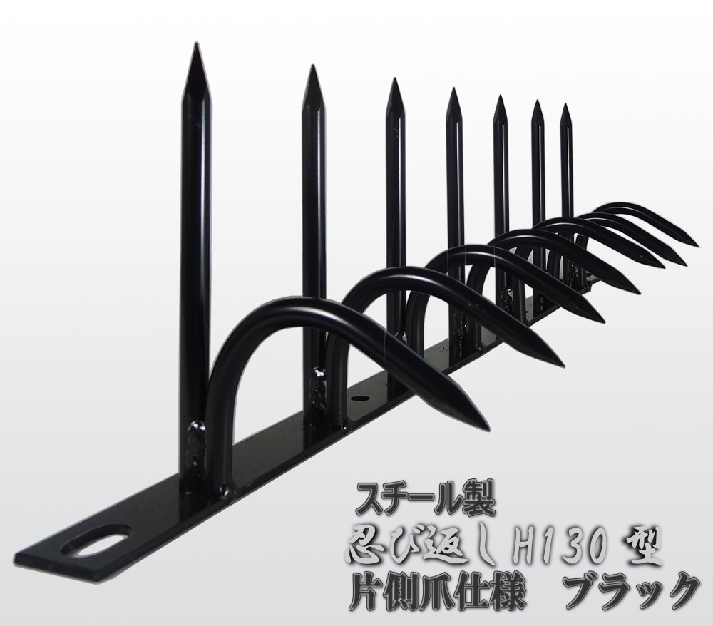 忍び 返し 屋外 防犯 フェンス H130型 スチール 製 片側 爪 ブラック 防犯対策 リフォーム 金具