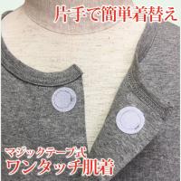 綿100%の優しい着心地の前開き肌着。ケガやマヒで片手が不自由な方にも一人で着替えがしやすいように設計。フライス編みで横方向にストレッチが効きゆったり動きやすい ワンタッチテープで着脱らくらく 綿の特性で冬は暖かく、夏は涼しい。介護する方される方の負担も軽減。名前が書けるネームタグ付き。急な入院や手術、入所へのプレゼントにもにお勧め。