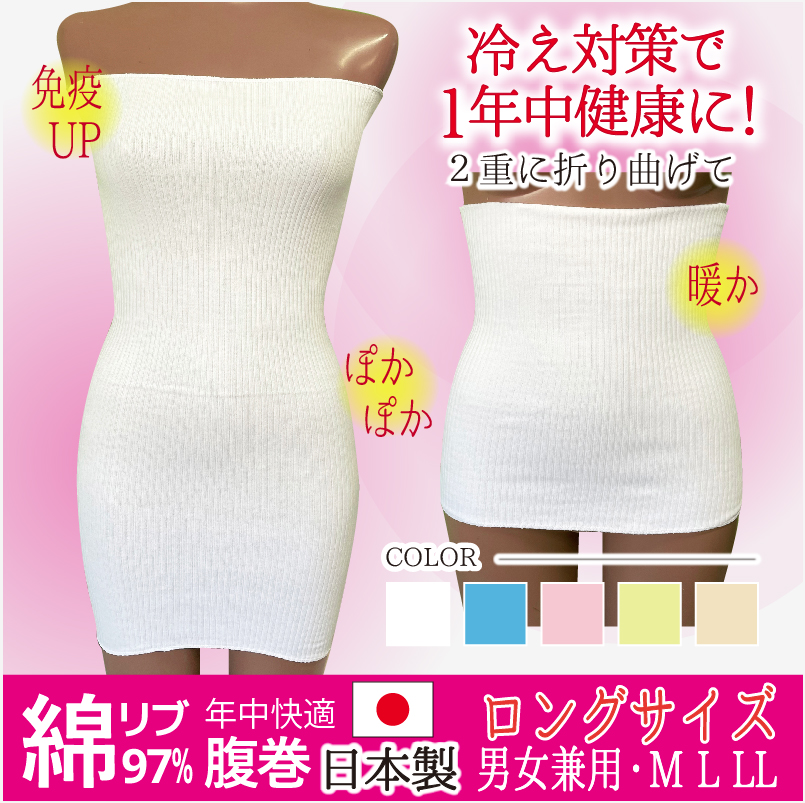 腹巻 はらまき ハラマキ 日本製 ロング丈 冷えとり 男女兼用 レディース メンズ リブ 綿 綿混 大きいサイズ セール 冷房対策 暖かい 健康 ウエストウォーマー
