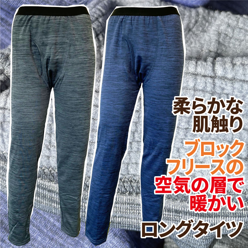 ロングタイツ ズボン下 ステテコ 防寒 暖かい ストレッチ 紳士用 メンズ 肌着 下着 前開き インナー 男性用 パッチ ブロックフリース 保温 冬用 ボトム ヤマダ
