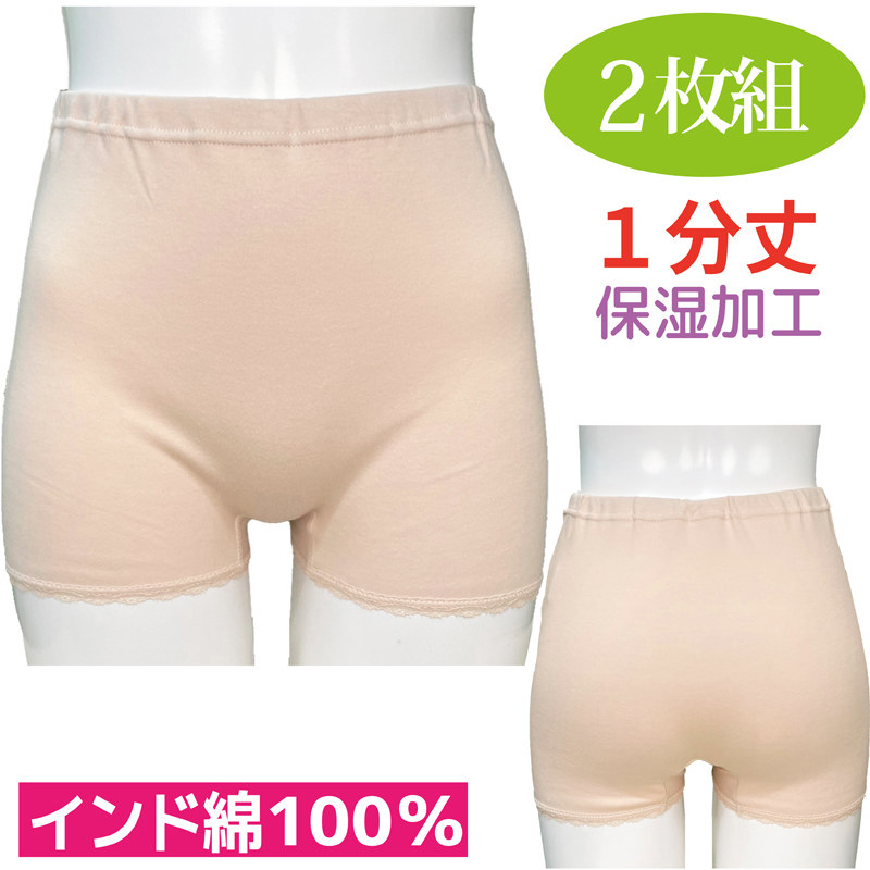 一分丈 1分丈 パンツ ショーツ 婦人用 女性用 レディース ズロース 綿 100% 2枚組 2P 下着 肌着 シルクプロテイン保湿加工 大きいサイズ ヤマダ