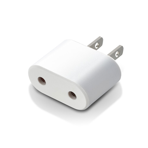 インドネシア、イタリア、スイスなどで使われるCタイプコンセントプラグを日本国内向け形状のコンセントプラグに変換できるアダプタ。
