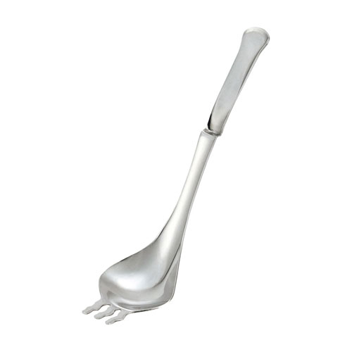 箸の代わりに波刃のフォーク、レンゲの代わりに最後の一滴まですくいやすいスプーン形状になっており、この1本で麺類を食すことができます。