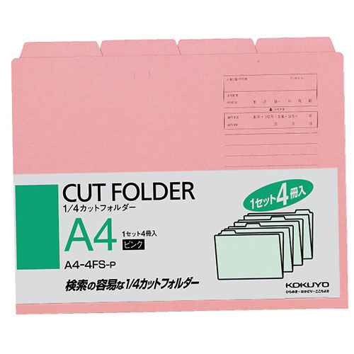 コクヨ 1/4カットフォルダー カラー A4 ピンク 4冊入 A4-4FS-P