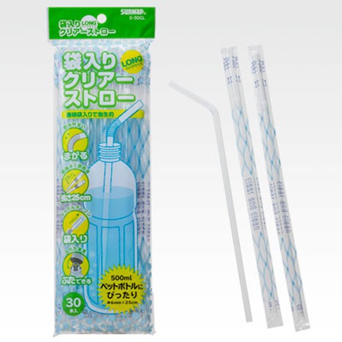 サンナップ 袋入りクリアーストロー ロング 25cm 30本 S-30CL 5272720
