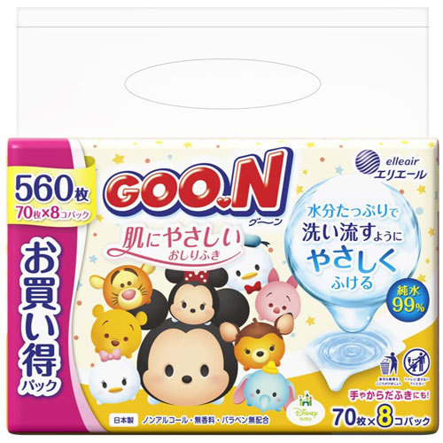 ・つめかえ用には「エリエール グ〜ン 肌にやさしいおしりふきつめかえ用」をご使用ください。