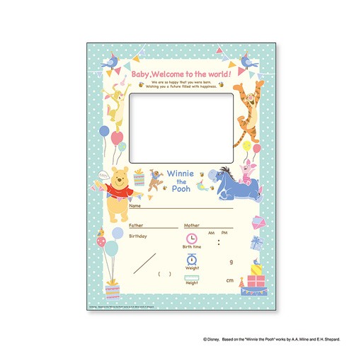 お子さまの誕生記録・記念日の写真といっしょに飾れるキャラクターデザイン台紙。