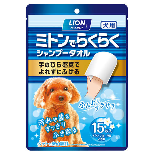 手のひら感覚でしっかりふけるミトンタイプのペット用シャンプータオルです。
