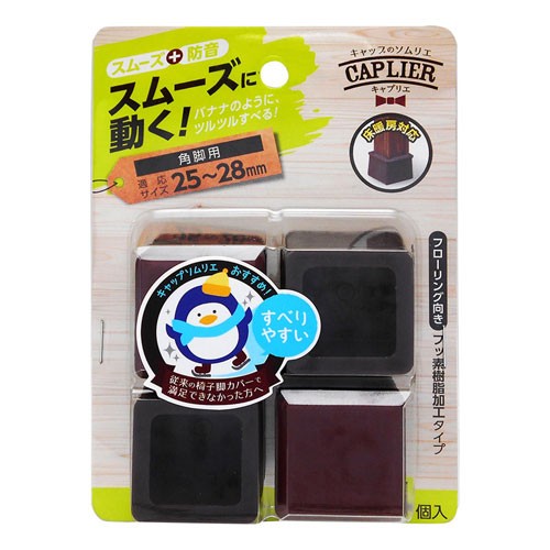 家具のスベリ材角キャップは四角い脚の家具やテーブル・イスに取り付けるだけで、お掃除などの際に家具が楽に移動できるように工夫された商品です。