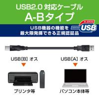 パソコンに、USB(Bタイプ)のインターフェイスを持つプリンタや外付けハードディスクドライブなどの周辺機器を接続できる、A-BタイプのUSB2.0ケーブル。