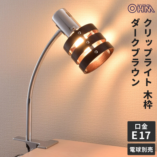オーム電機 クリップライト ウッドリング ダークブラウン E17 電球別売 LTC-N2DW