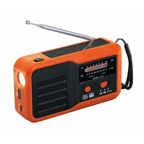 ■4つの機能は、ワイドFM対応AM・FMラジオ、LEDライト、大音量サイレン、USB給電。