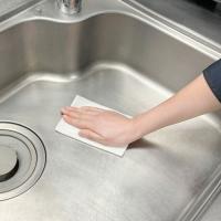 ■キッチンのシンクや洗面台に付着した汚れ・水アカをしっかりと拭き取り、同時に表面にコーティング膜を形成します。