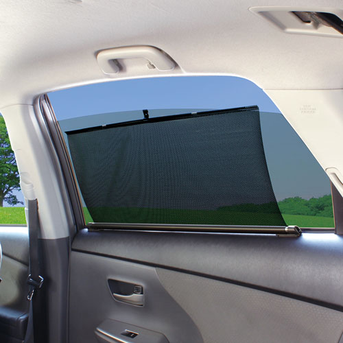 ■窓の開け閉めに連動して伸縮するメッシュタイプのロールカーテン。