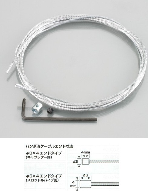 K-CON キタココンビニパーツ インナーワイヤーセット(スロットル用) エンド部サイズ:Φ3×4 スロットルワイヤー・アクセルワイヤー ハンドル周辺パーツ