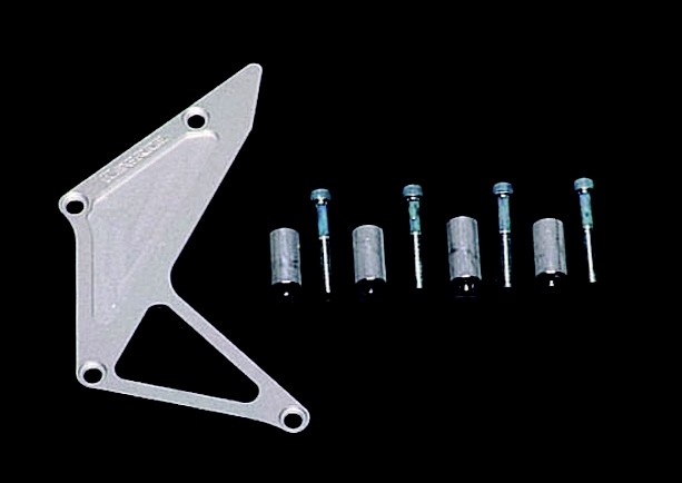 高強度アルミ材をベースにNCマシニングセンターで削り出した高精度スプロケットガード。ノーマルパーツと交換する事により、若干の軽量化とドライブスプロケット周辺のメンテナンス性が向上する。コワースバックステップキットと同時装着することにより、メカニカルな存在感をアピール。