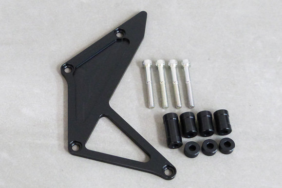 高強度アルミ材をベースにNCマシニングセンターで削り出した高精度スプロケットガード。ノーマルパーツと交換する事により、若干の軽量化とドライブスプロケット周辺のメンテナンス性が向上する。コワースバックステップキットと同時装着することにより、メカニカルな存在感をアピール。