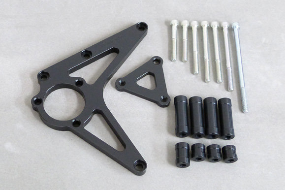 高強度アルミ材をベースにNCマシニングセンターで削り出した高精度スプロケットガード。ノーマルパーツと交換する事により、若干の軽量化とドライブスプロケット周辺のメンテナンス性が向上する。コワースバックステップキットと同時装着することにより、メカニカルな存在感をアピール。