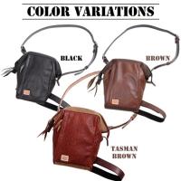 がま口タイプで大きく開き、中身が取り出しやすいホルスターバッグ。