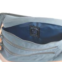 底部には牛革を使用、外側に使用頻度が高いものを取り出しやすいようにジップポケットを2つ配しました。