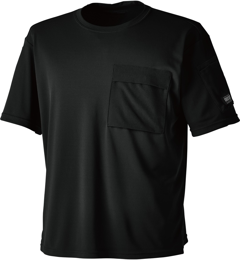 左袖にはペン差し用のポケット、両脇下に消臭テープ、襟後ろロゴプリント付き。