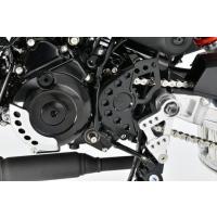 純正のクランクケース破損防止プレートを装着可能にし、厚み30mmのアルミ材から削り出したカバー。