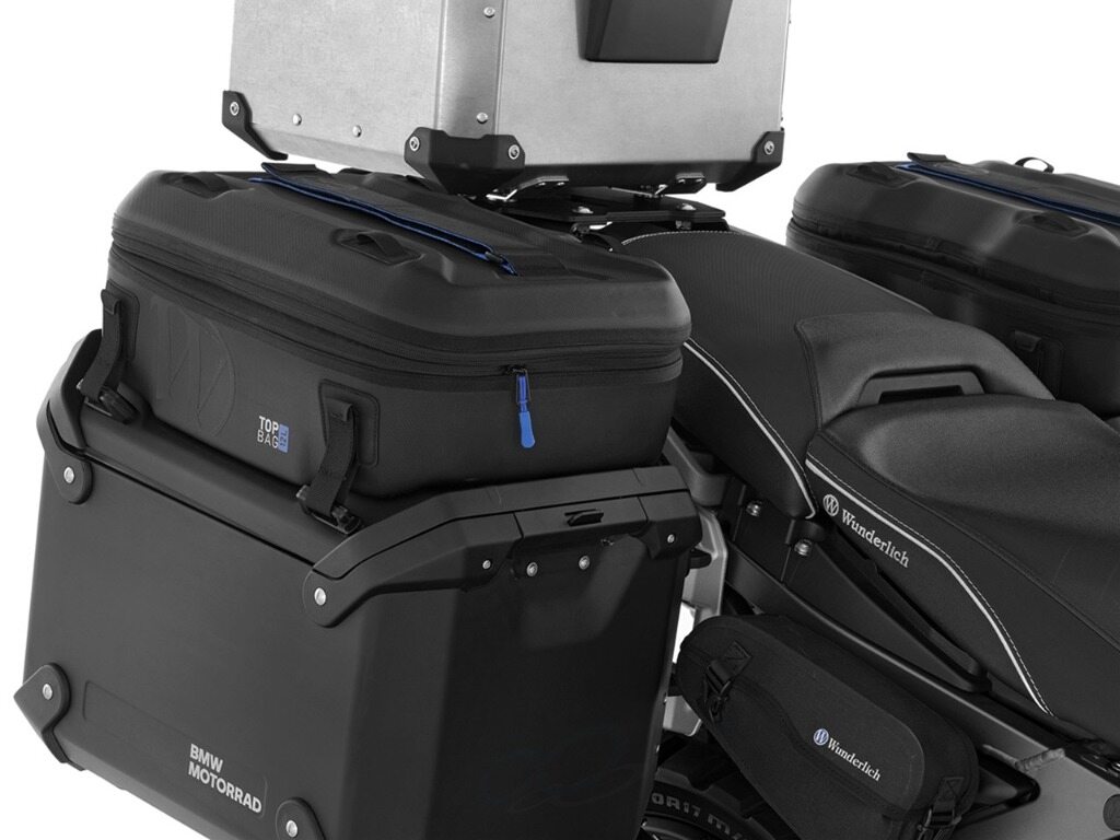 BMW 純正パニアケースの蓋上に装着するパニアケース用トップバッグ。