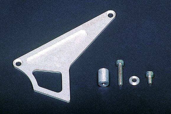 高強度アルミ材をベースにNCマシニングセンターで削り出した高精度スプロケットガード。ノーマルパーツと交換する事により、若干の軽量化とドライブスプロケット周辺のメンテナンス性が向上する。コワースバックステップキットと同時装着することにより、メカニカルな存在感をアピール。