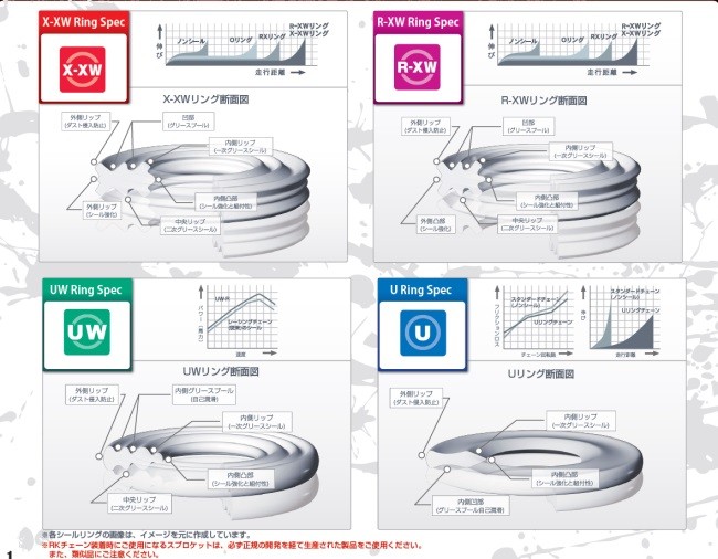 ※ドライブチェーンは、モーターサイクルにおける、重要保安部品です。重大な事故を避け、安全に走行する為にモーターサイクルの取扱説明書及び、チェーンの取扱説明書を十分にお読みください。チェーンの取付け、取扱いについてはメカニックにご相談ください。