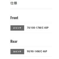 ※車種名、排気量、年式が同じでも、車種によってはマイナーチェンジ、特殊仕様車およびカスタム状況によりサイズが異なる場合がございます。必ず実際に装着されているタイヤのチューブ、サイズ、スピードシンボル、荷重指数、タイヤ種類などをご確認の上、サイズ・パターンの選択はご使用者様の自己責任において行って下さい。
