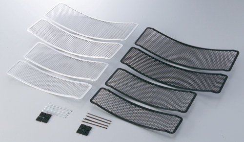 飛び石などによるコアの破損や、フィン内部へのゴミの侵入を軽減させるのがコアガードです。オイルクーラー・ラジエーターのコアは冷却効果を高めるために細かなフィン構造をもっているため、装着をおすすめします。
