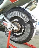 ホイールサイドカバーは厳選された特殊な素材を使用することにより、風や外気温の影響を完全にシャットアウトすることに成功し、ホイール温度(タイヤ内空気)を効率良く上昇させることに成功しました。