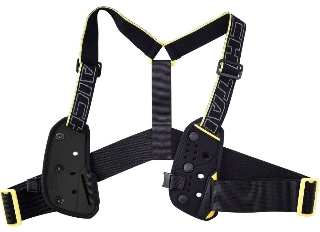 ボタンシステムがないジャケットを着用する際に使用することでチェストプロテクターを身体に装着することができます。